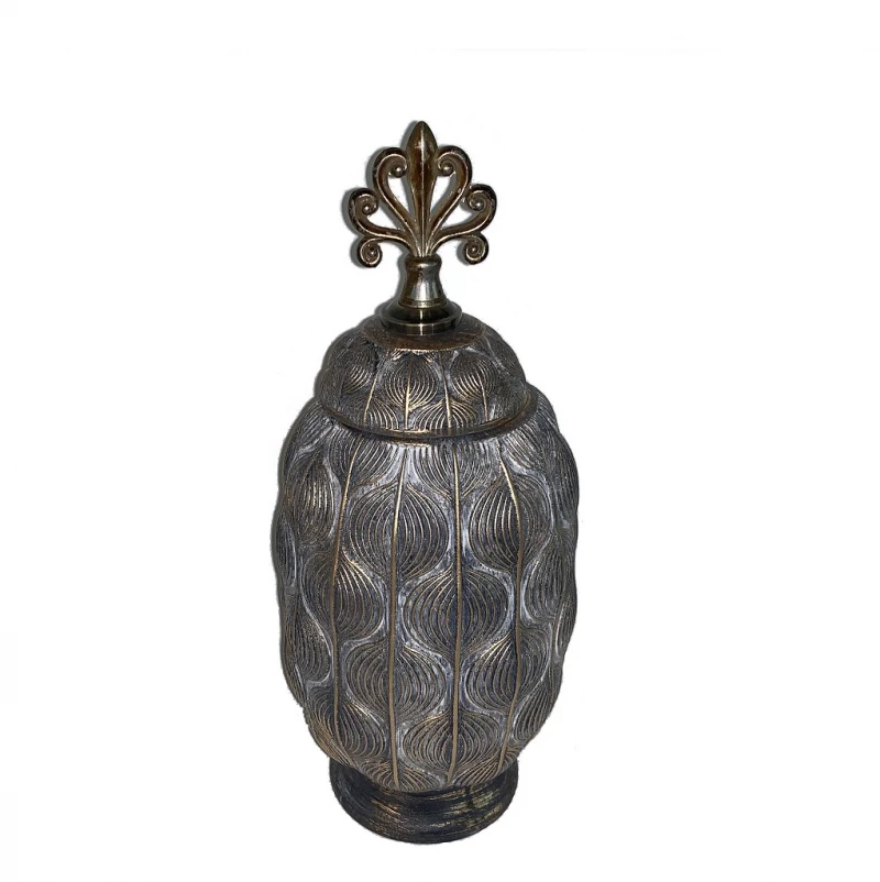 Διακοσμητικό δοχείο με καπάκι κεραμικό-μεταλλικό σε μπρονζέ χρώμα από την ESPIEL - Διαστάσεις: 14,2x34εκ.