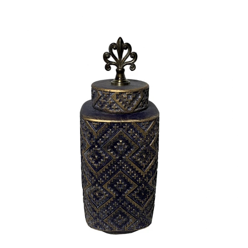Διακοσμητικό Δοχείο Κεραμικό-Μεταλλικό Με Καπάκι Μπρονζέ ESPIEL 14,5x36εκ. TOL350