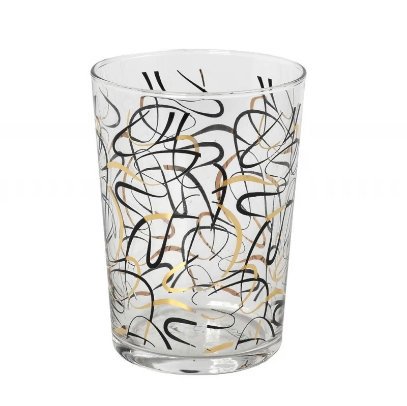 Ποτήρι νερού με χρυσό - μαύρο σχέδιο της σειράς Lucia από την ESPIEL - Χωρητικότητας: 510ml - Διαστάσεις: 8,8x12εκ. - Η ελάχιστη ποσότητα αγοράς για αυτό το προϊόν είναι 6τμχ.