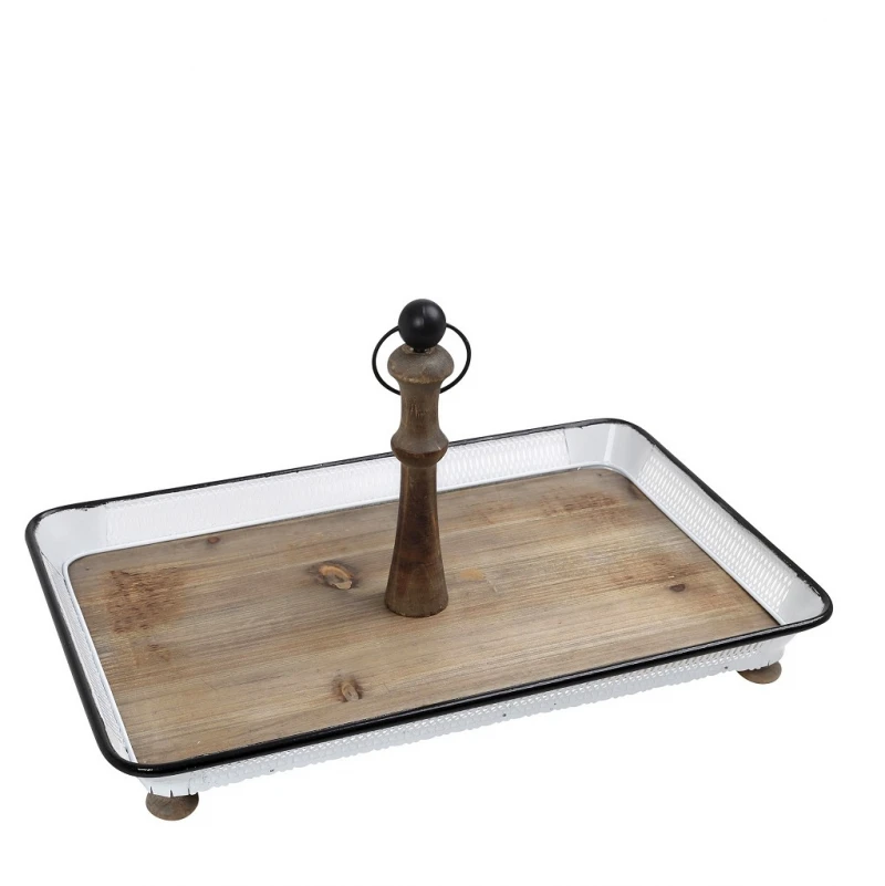 Ορντερβιέρα ορθογώνια μεταλλική με ξύλινο πάτο σε λευκό χρώμα από την ESPIEL - Διαστάσεις: 46,5x30x29εκ.