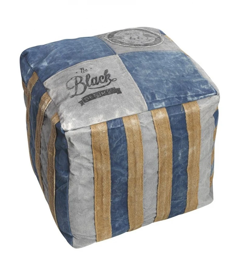 Πουφ τετράγωνο με γκρι - μπλε ρίγα από την ESPIEL - Διαστάσεις: 40x40εκ.