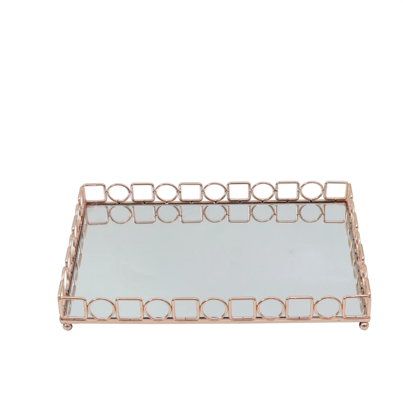 Δίσκος σερβιρίσματος με καθρέπτη μεταλλικός σε ροζ χρυσό χρώμα από την ESPIEL - Διαστάσεις: 45x30x5,5εκ.