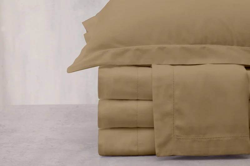 Σετ σεντόνια υπέρδιπλα 100% βαμβακοσατέν, 220 κλωστών, σε μπεζ χρώμα από την εταιρεία Makis Tselios Home. Το σετ περιλαμβάνει: 2 σεντόνια 240x260εκ. και 2 μαξιλαροθήκες 52x72εκ. oxford ραφής.