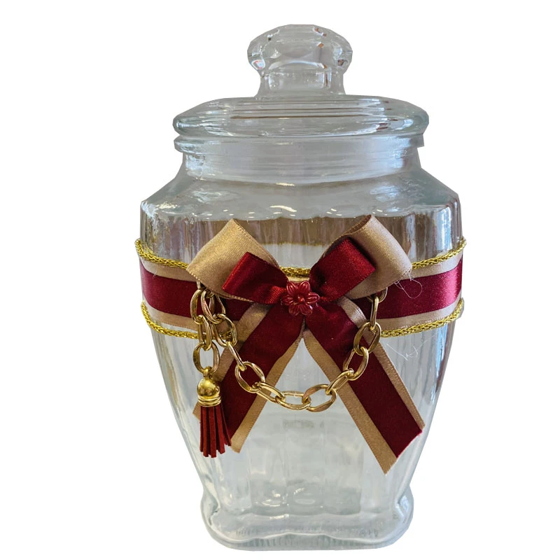 Χριστουγεννιάτικο δοχείο με καπάκι, γυάλινο διακοσμημένο με κορδέλα και σκοινί από την Royal Art Collection - Διαστάσεις: 26εκ.