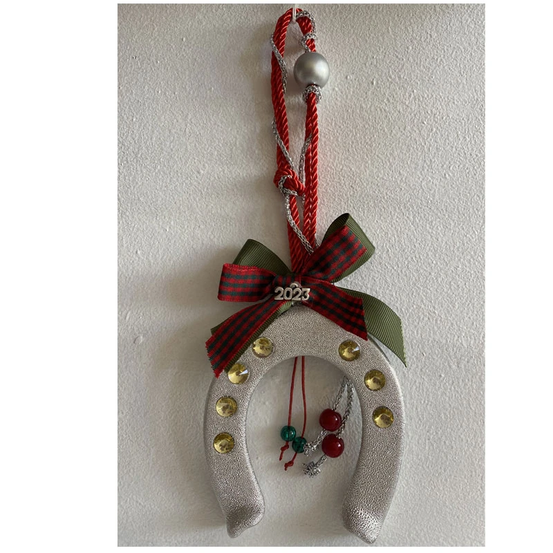 Διακοσμητικό κρεμαστό με φαγιάνς πέταλο, σε ασημί απόχρωση, χειροποίητα διακοσμημένο με σκοινί και φιόγκο από την Royal Art Collection - Διαστάσεις: 30εκ.