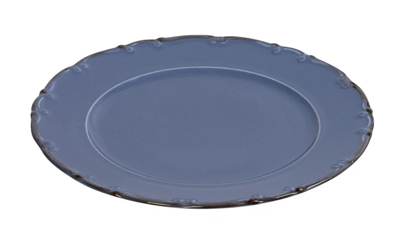 Πιάτο φαγητού ρηχό πορσελάνης σε γαλάζιο χρώμα με καφέ χείλος από την ESPIEL - Διαστάσεις: 27εκ. - Η ελάχιστη ποσότητα αγοράς για αυτό το προϊόν είναι 6τμχ.