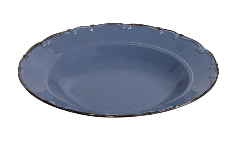 Πιάτο φαγητού βαθύ πορσελάνης σε γαλάζιο χρώμα με καφέ χείλος από την ESPIEL - Διαστάσεις: 23εκ. - Η ελάχιστη ποσότητα αγοράς για αυτό το προϊόν είναι 6τμχ.