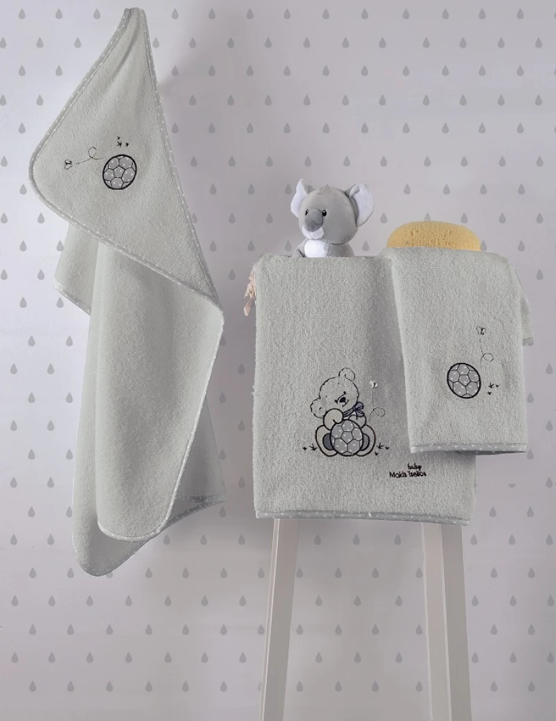 Μπουρνουζοκάπα bebe, 100% βαμβάκι, 450gr, με σχέδιο αρκουδάκι από την εταιρεία Makis Tselios Home. - Διαστάσεις: 75x75εκ.