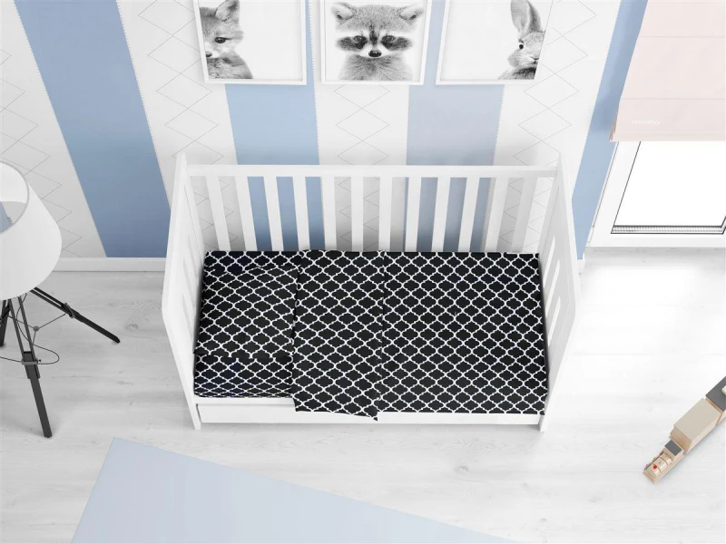 Παπλωματοθήκη κούνιας με φερμουάρ εμπριμέ, 100% βαμβακερή, 144 κλωστών σε μπλε σκούρο-λευκό χρώμα από την DIMcol - Διαστάσεις: 120x160εκ.