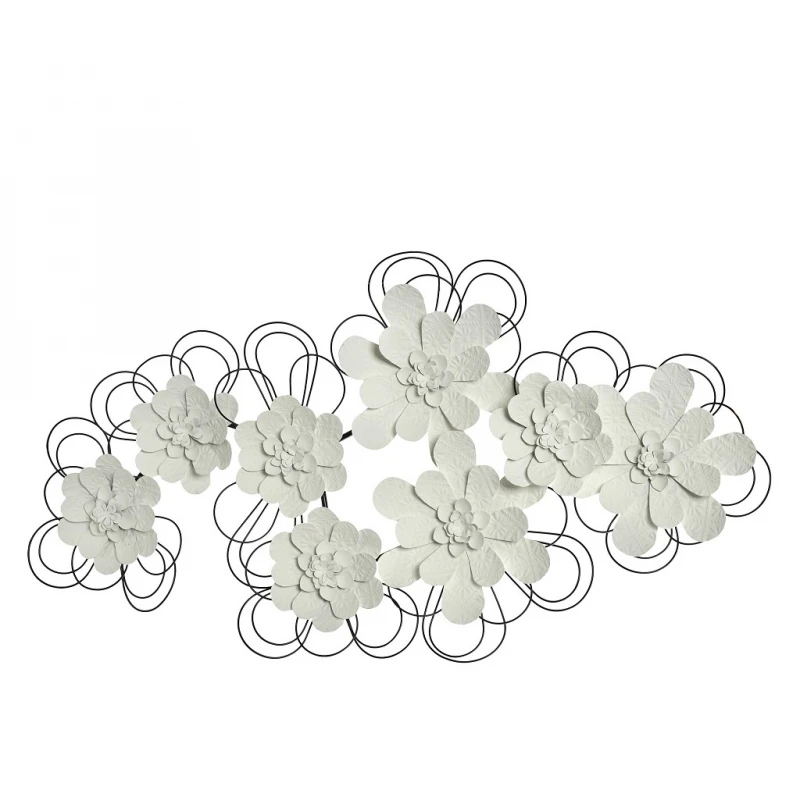 Διακοσμητικό τοίχου μεταλλικό σε λευκό χρώμα με σχέδιο λουλούδια από την ESPIEL - Διαστάσεις: 90x6,5x51εκ.