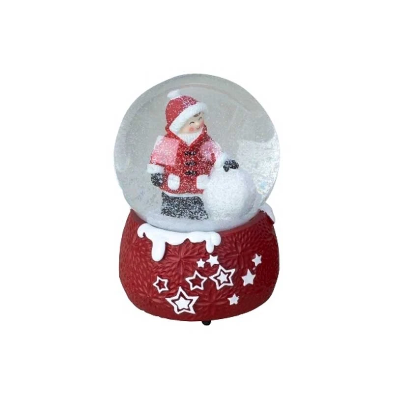 Χριστουγεννιάτικη διακοσμητική σφαίρα γυάλινη με μουσική σε κόκκινη απόχρωση με ένα αγοράκι και χιονόμπαλα από την Royal Art Collection - Διάσταση: ύψος 14,8εκ.