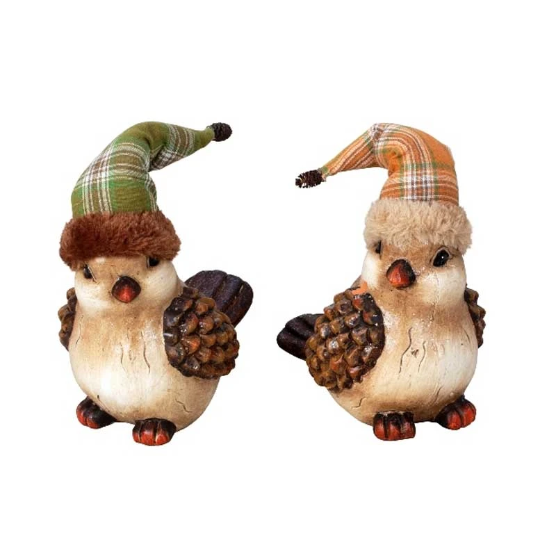 Σετ 2τμχ διακοσμητικά πουλάκια κεραμικά με σκουφάκια από την Royal Art Collection - Διάσταση: ύψος 12,5εκ.