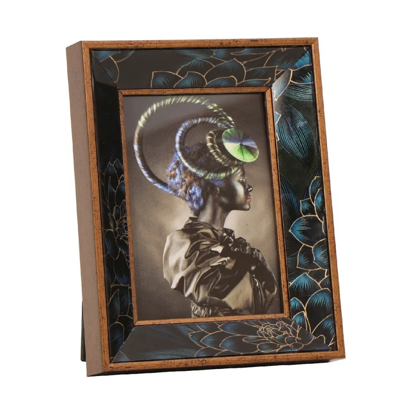 Κορνίζα γυάλινη με σχέδιο λουλούδι σε μπλε χρώμα από την ESPIEL - Διαστάσεις κορνίζας: 20,5x3,5x25,5εκ., Διαστάσεις φωτογραφίας: 15x20εκ.
