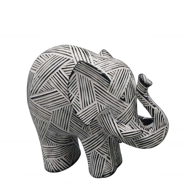 Διακοσμητικός επιτραπέζιος ελέφαντας polyresin σε λευκό-μαύρο χρώμα από την ESPIEL - Διαστάσεις: 25x10x21,4εκ.