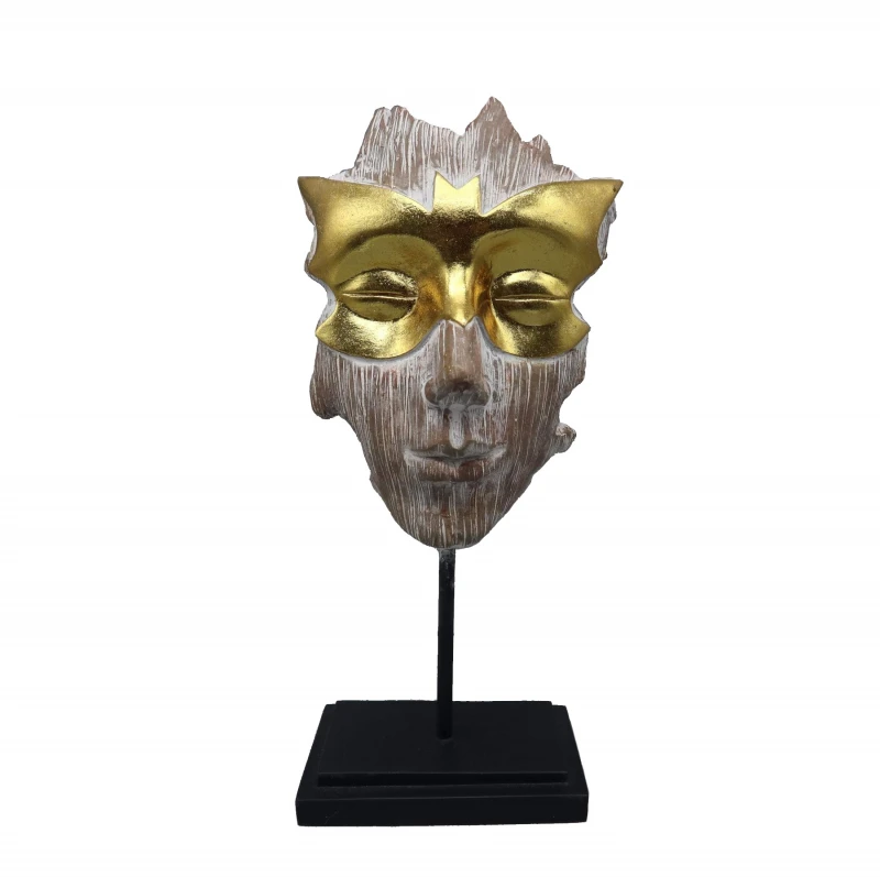 Διακοσμητικό επιτραπέζιο προσωπείο polyresin μπεζ με χρυσή μάσκα από την ESPIEL - Διαστάσεις: 13x8,2x28,5εκ.