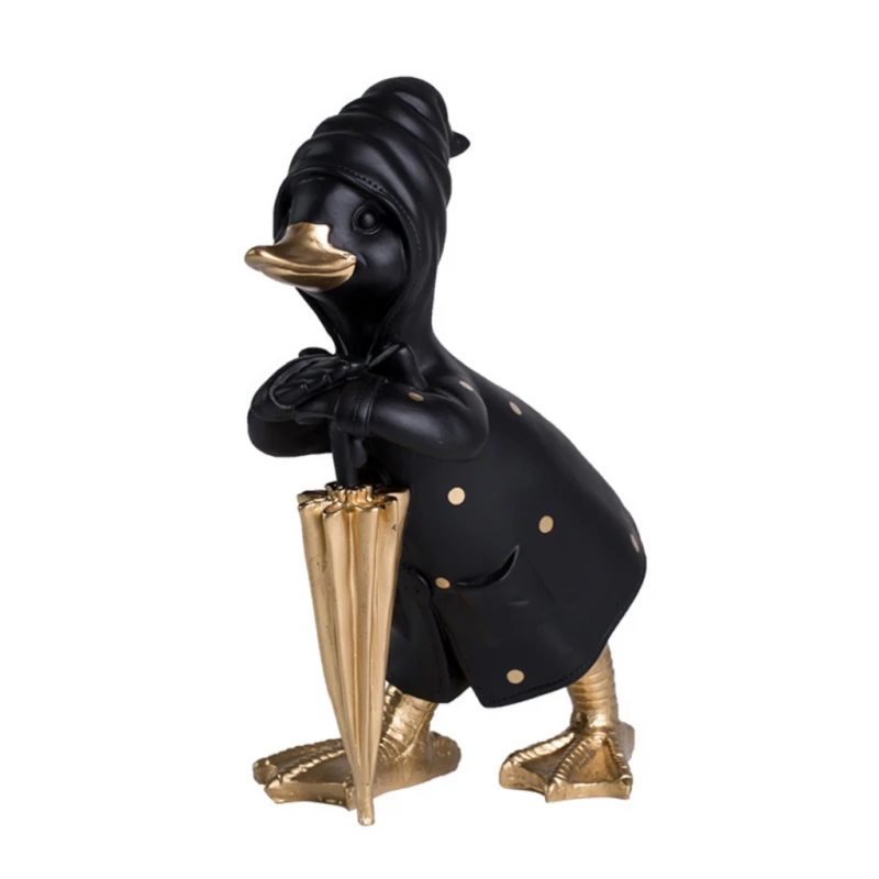 Διακοσμητική επιτραπέζια polyresin πάπια σε μαύρο-χρυσό χρώμα από την ESPIEL - Διαστάσεις: 9x17x25εκ.