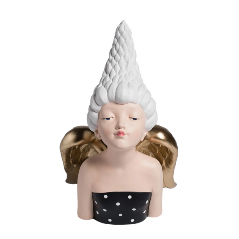Διακοσμητική επιτραπέζια polyresin νεράιδα σε μαύρο χρώμα με χρυσά φτερά της σειράς Ladies από την ESPIEL - Διαστάσεις: 21x17x36εκ.