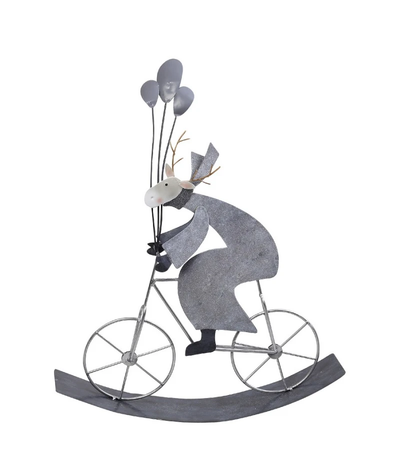 Χριστουγεννιάτικος διακοσμητικός τάρανδος πάνω σε ποδήλατο polyresin σε ασημί χρώμα από την ESPIEL - Διαστάσεις: 28,5x6x36εκ.
