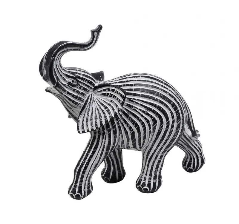 Διακοσμητικός επιτραπέζιος ελέφαντας polyresin σε γκρι χρώμα με ρίγες από την ESPIEL - Διαστάσεις: 23,7x10,8x28εκ.