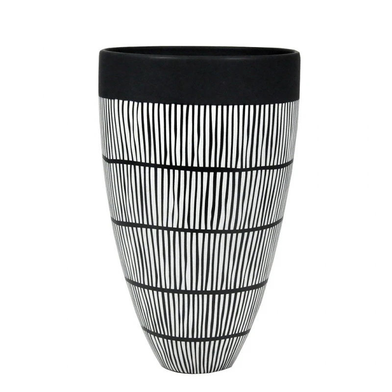 Βάζο πορσελάνης σε λευκό - μαύρο χρώμα από την ESPIEL - Διαστάσεις: 23x37,5εκ.