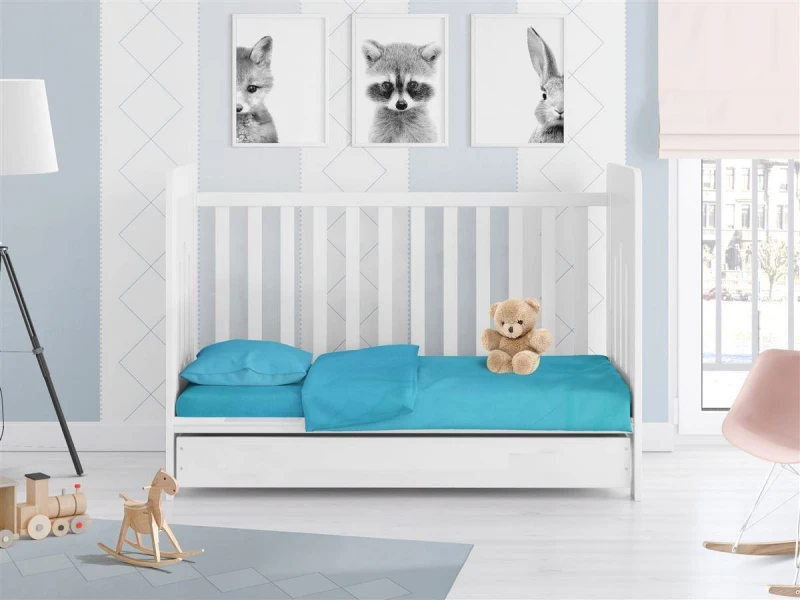 Σεντόνι κούνιας μονόχρωμο με λάστιχο, μεμονωμένο, 100% βαμβακερό, 144 κλωστών σε τυρκουάζ χρώμα από την DimCol- Διαστάσεις: 70x140+15εκ.