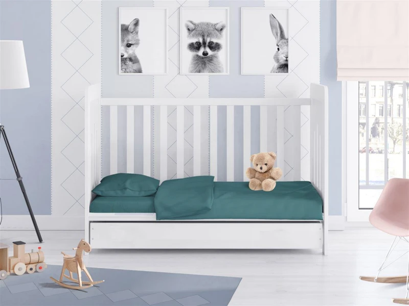 Σετ σεντόνια 3τμχ κούνιας μονόχρωμα, 100% βαμβακερά, 144 κλωστών σε πετρόλ χρώμα από την DimCol. Το σετ περιλαμβάνει: 2 σεντόνια κούνιας 120x160εκ. και 1 μαξιλαροθήκη 35x45εκ.