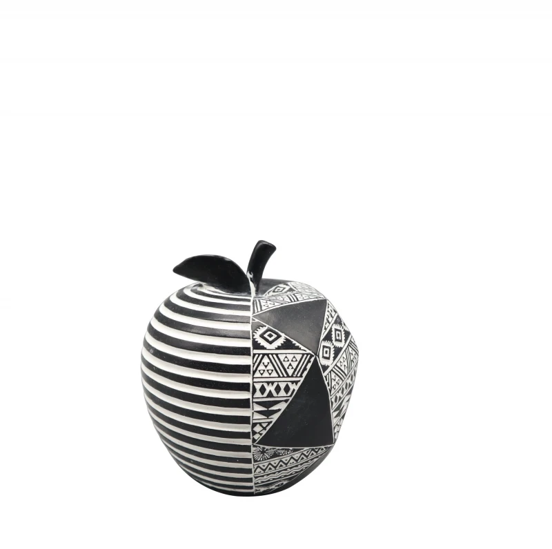 Διακοσμητικό επιτραπέζιο μήλο polyresin σε μαύρο - λευκό χρώμα από την ESPIEL - Διαστάσεις: 10x11,5εκ.