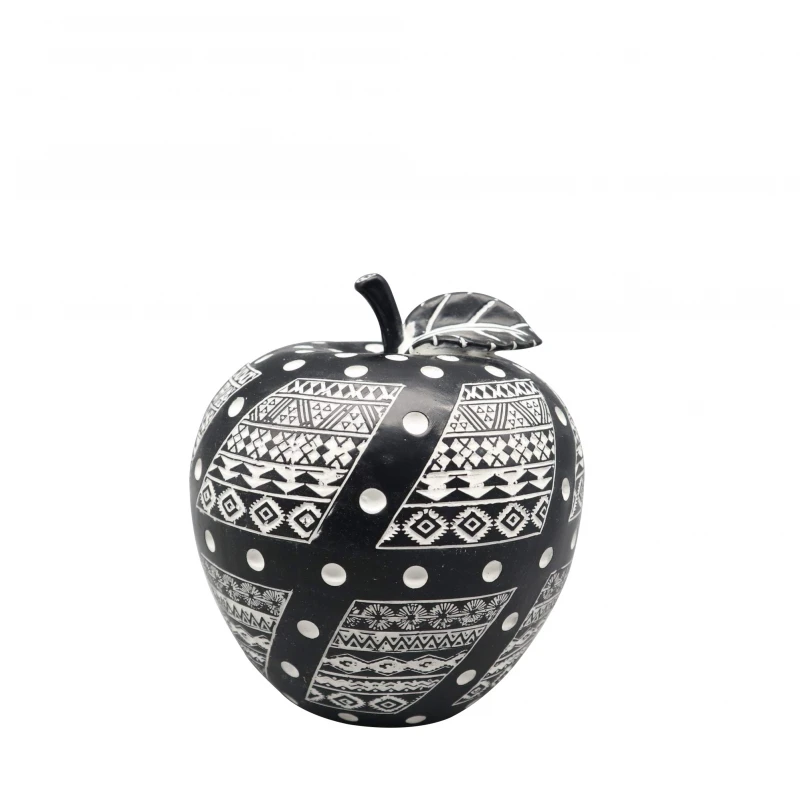 Διακοσμητικό επιτραπέζιο μήλο polyresin σε μαύρο - λευκό χρώμα από την ESPIEL - Διαστάσεις: 14,5x15εκ.