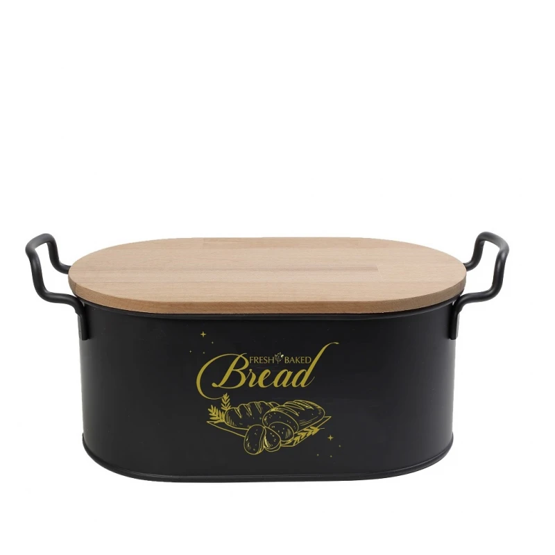 Ψωμιέρα Μεταλλική Με Καπάκι Μαύρη Ματ ESPIEL 39,5x20x16,5εκ. TEM111