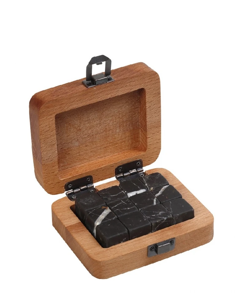 Ξύλινο κουτί με 12 μαρμάρινους κύβους αντί πάγου για το ποτό από την ESPIEL - Διαστάσεις: 11x9x4εκ.