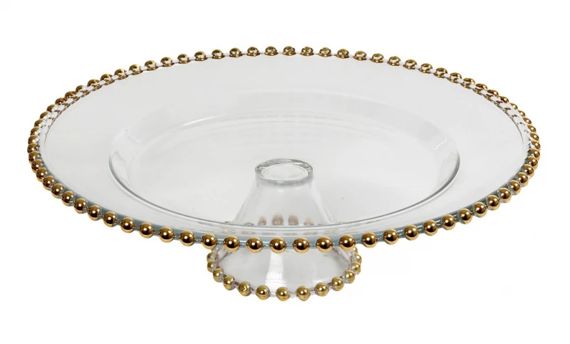 Διακοσμητική πιατέλα γυάλινη με πόδι διάφανη με χρυσό χείλος της σειράς Atlas από την ESPIEL - Διαστάσεις: 34x10εκ.