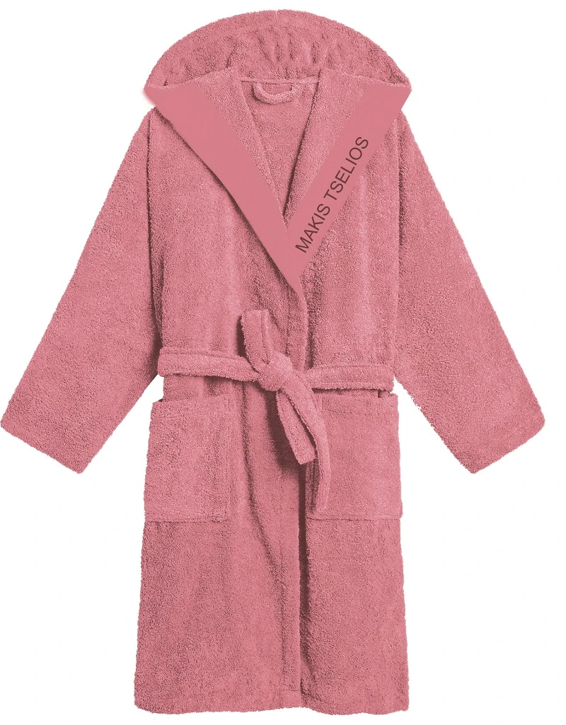 Μπουρνούζι ενηλίκων 100% βαμβακερό με κουκούλα, πλαινές τσέπες και κεντητό λογότυπο σε ροζ χρώμα της σειράς West από την εταιρεία Makis Tselios Home - Μέγεθος: Large.