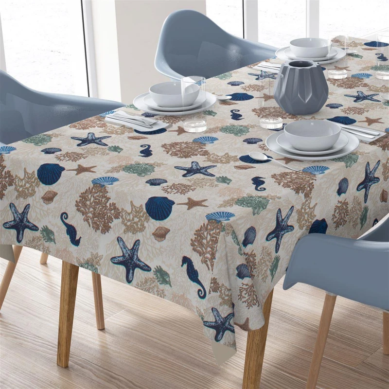 Καρές Εμπριμέ Polycotton Αλέκιαστος 90x90εκ. Coral Reef 475 Ecru DimCol
