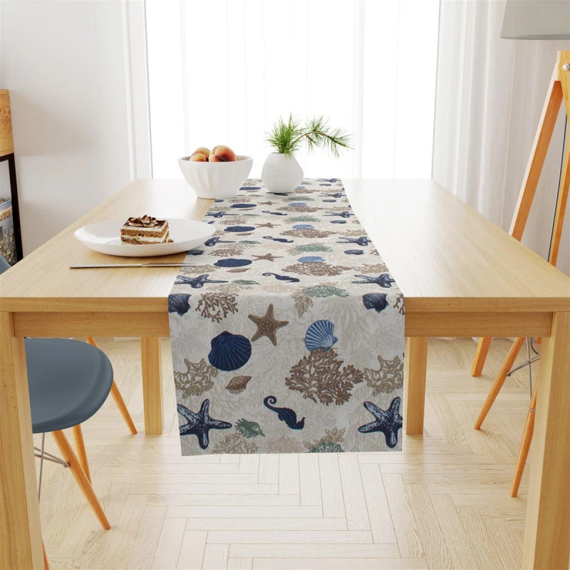 Runner εμπριμέ αλέκιαστo 70% βαμβάκι-30% polyester, σε εκρού χρώμα από την DimCol - Διαστάσεις: 40x180εκ.