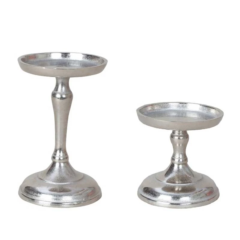 Κηροπήγια μεταλλικά σετ 2τμχ στρογγυλά σε ασημί χρώμα από την Royal Art Collection - Διαστάσεις: 17,5εκ.-11εκ.