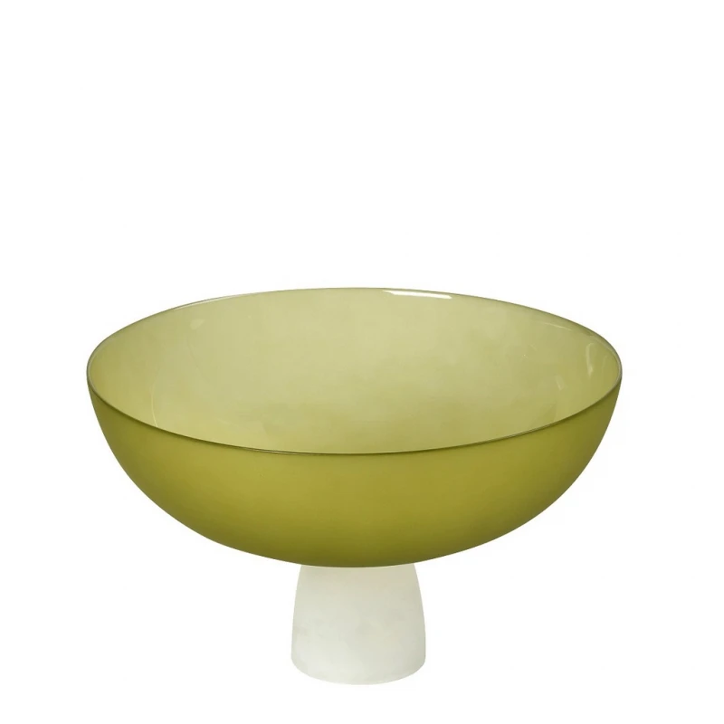 Διακοσμητικό μπωλ, με πόδι, γυάλινο και σε lime χρώμα της σειράς caprice από την ESPIEL - Διαστάσεις: 28x28x17,5εκ.
