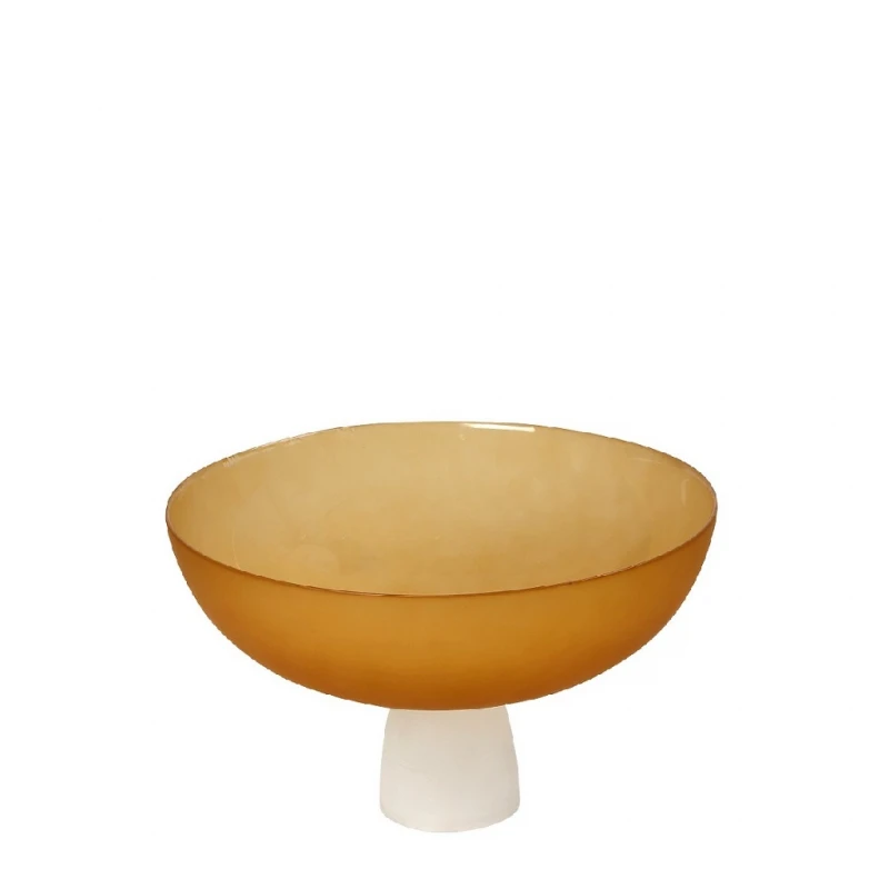 Διακοσμητικό μπωλ, με πόδι, γυάλινο και σε μουσταρδί χρώμα της σειράς caprice από την ESPIEL - Διαστάσεις: 24x24x15εκ.