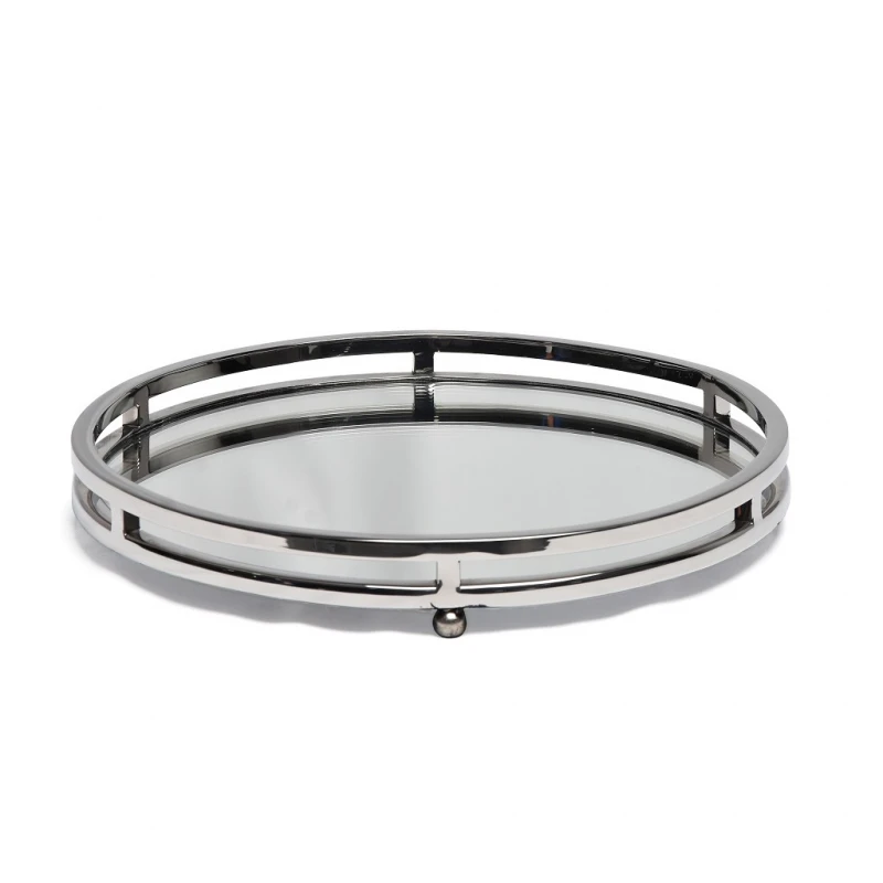 Δίσκος σερβιρίσματος, στρογγυλός, ανοξείδωτος με καθρέπτη από την ESPIEL - Διαστάσεις: 33x33x4,5εκ.
