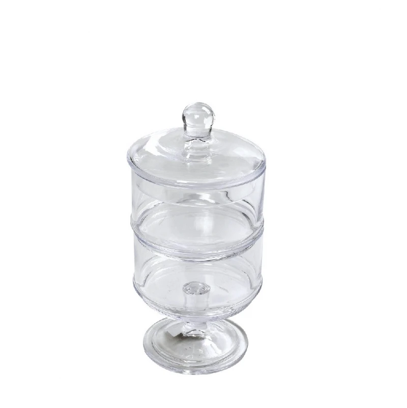 Διακοσμητικό δοχείο 2 επιπέδων, γυάλινο, με καπάκι και πόδι, σε διάφανο χρώμα από την ESPIEL - Διαστάσεις: 8x8x19εκ.