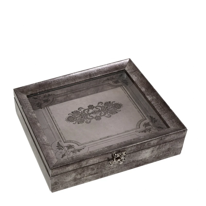 Κουτί αποθήκευσης, polyresin, με γυάλινο καπάκι, σε ασημί χρώμα από την ESPIEL - Διαστάσεις: 30x26x6εκ.