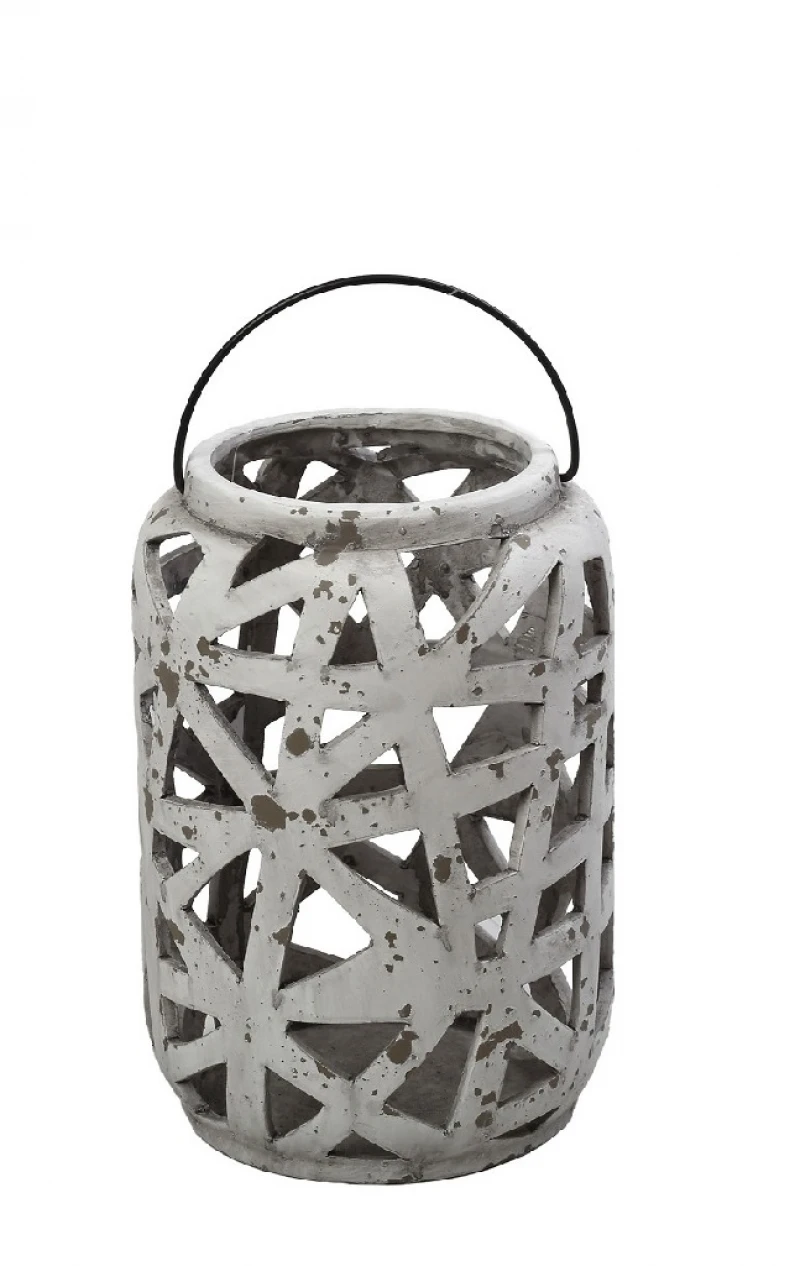 Φανάρι κεραμικό σε γκρι χρώμα από την ESPIEL - Διαστάσεις: 16x16x24εκ.