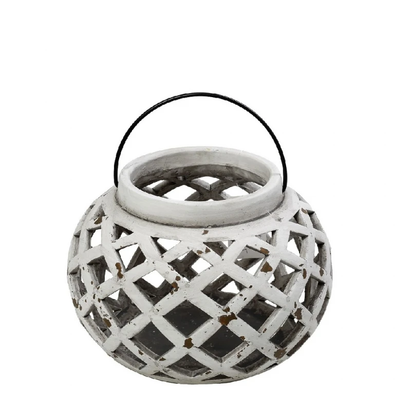 Φανάρι κεραμικό, στρογγυλό, σε γκρι-λευκό χρώμα από την ESPIEL - Διαστάσεις: 20x20x14,5εκ.