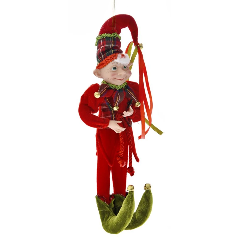 Χριστουγεννιάτικο διακοσμητικό κρεμαστό ξωτικό βελούδινο σε κόκκινο-πράσινο χρώμα από την iliadis - Διαστάσεις: 40εκ.