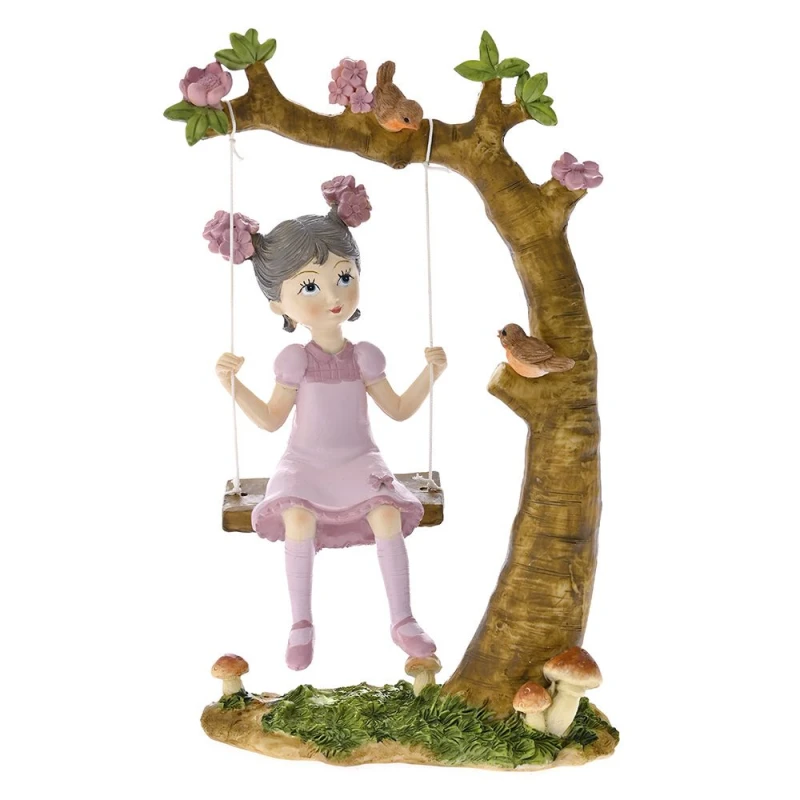 Διακοσμητικό επιτραπέζιο κορίτσι, καθιστό σε κούνια κρεμασμένη σε δέντρο, polyresin, από την iliadis - Διαστάσεις: 12x5,5x19,5εκ.