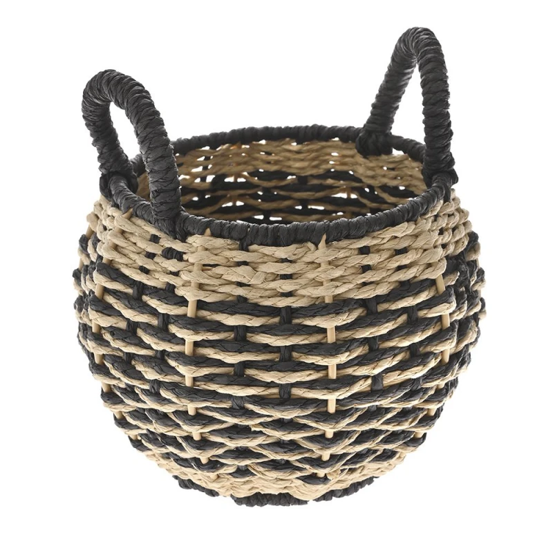 Καλάθι ψάθινο σε μαύρο χρώμα από την iliadis - Διαστάσεις: 16x15εκ.