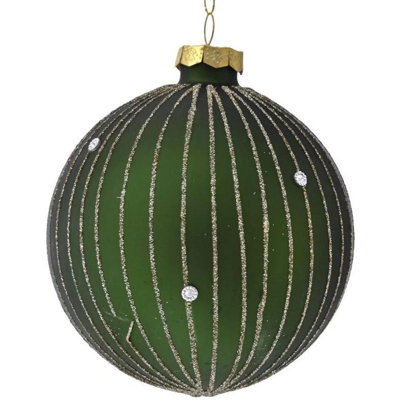 Σετ μπάλες 4τμχ γυάλινες, ριγέ, σε πράσινο χρώμα από την iliadis - Διαστάσεις: 10εκ.