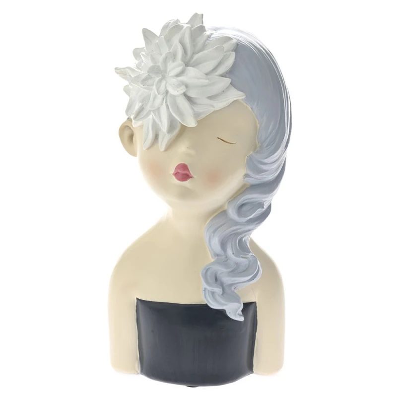 Διακοσμητική επιτραπέζια κοπέλα με λουλούδι στο κεφάλι, polyresin, από την iliadis - Διαστάσεις: 13x13x25εκ.
