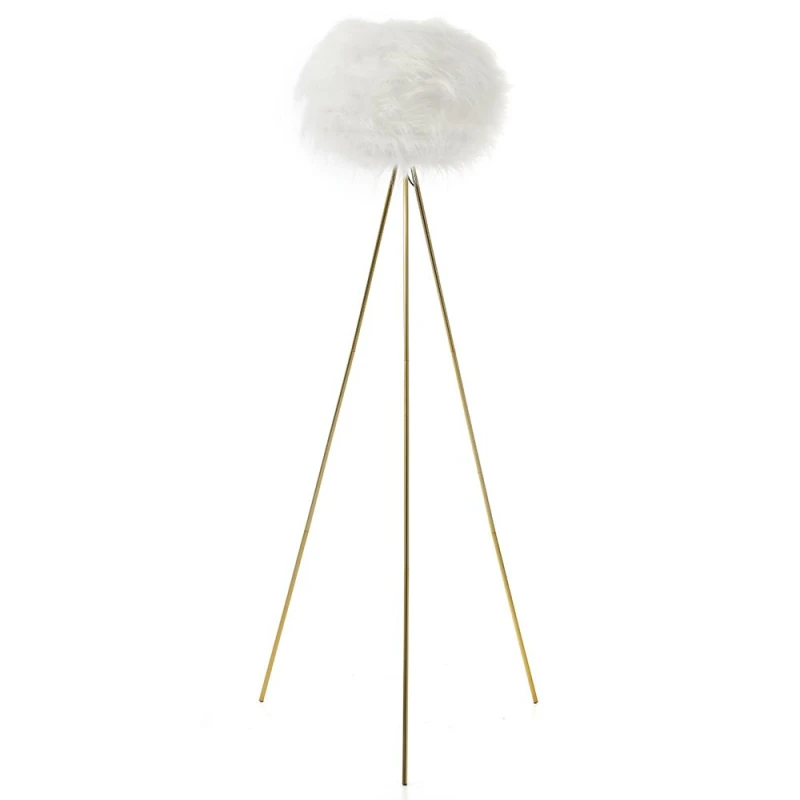 Φωτιστικό επιδαπέδιο, τρίποδο, μεταλλικό χρυσό με λευκό καπέλο από συνθετική γούνα από την iliadis - Διαστάσεις: 40x156εκ.