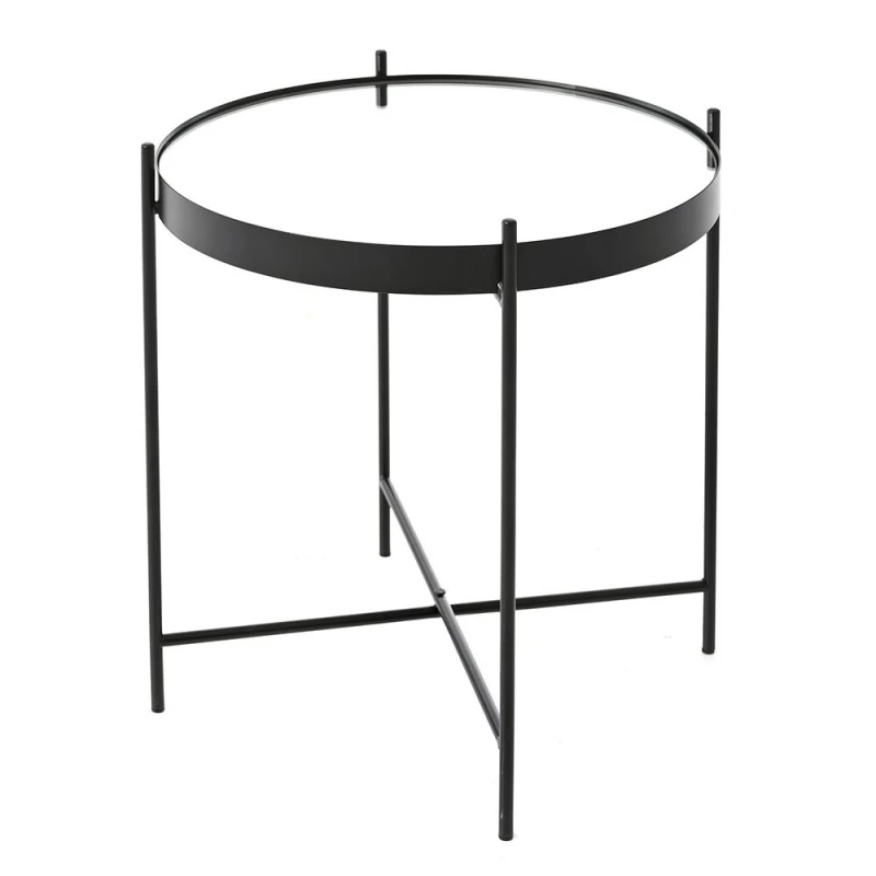 Τραπεζάκι στρογγυλό μεταλλικό με γυάλινη επιφάνεια σε μαύρο χρώμα από την iliadis - Διαστάσεις: 43x45εκ.
