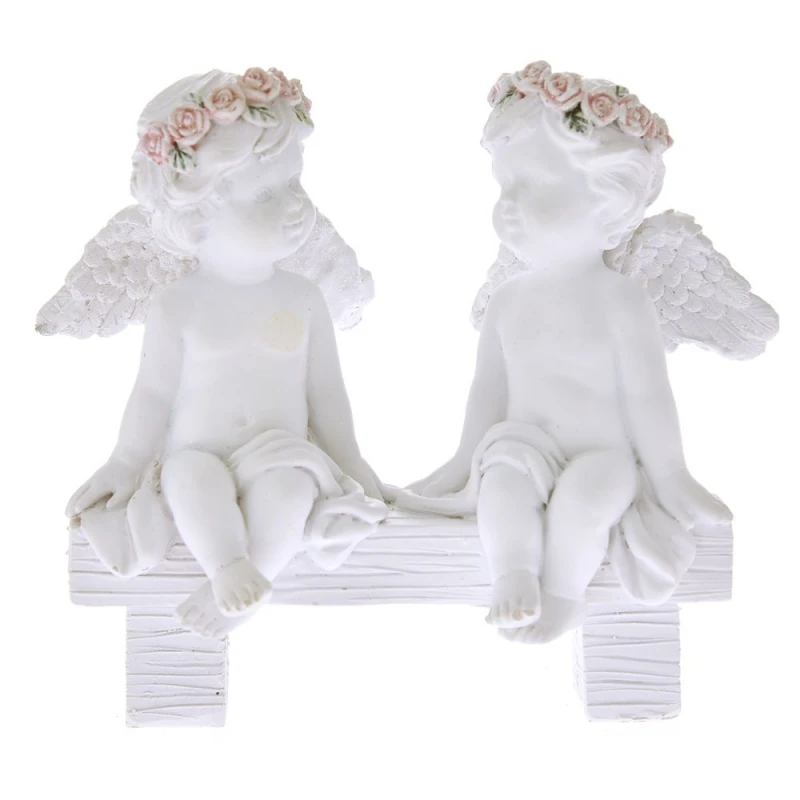 Διακοσμητικοί επιτραπέζιοι άγγελοι, καθιστοί σε παγκάκι, polyresin σε λευκό χρώμα από την iliadis - Διαστάσεις: 12x7x10εκ.
